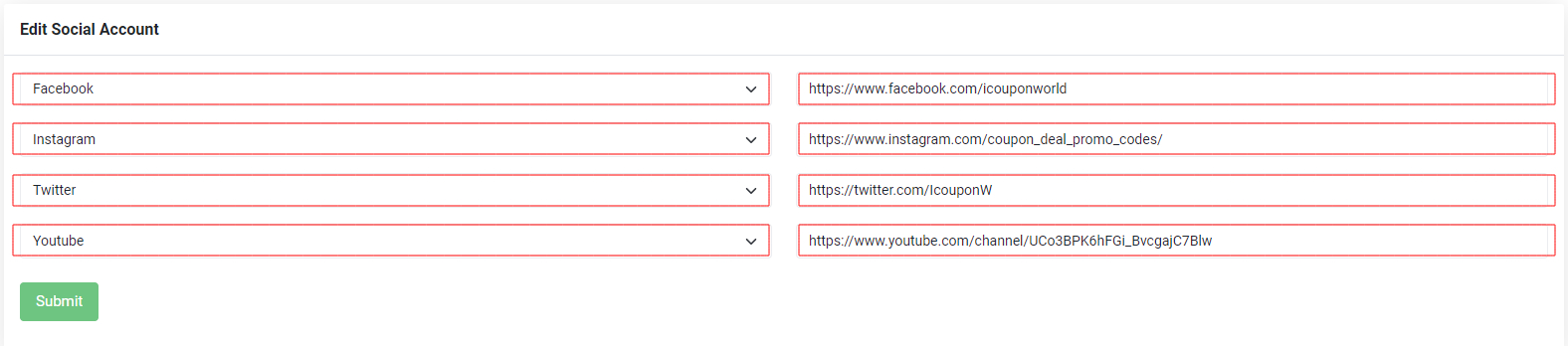 Here you can edit the account of social media and you can also enter the link of that social media.